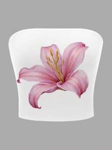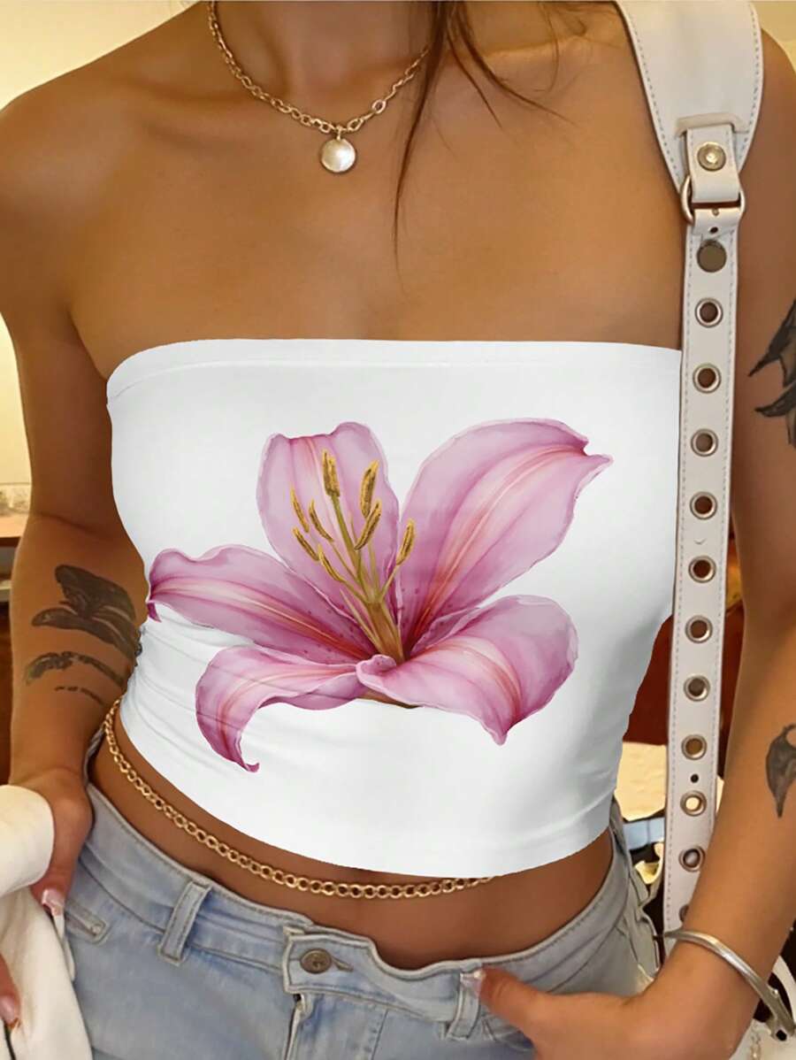 Y2K Casual Flower Print Bandeau Top, Suitable For Daily Wear, Spring/Summer Beach/Vacation