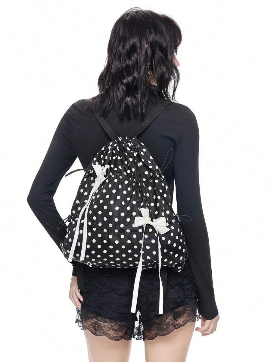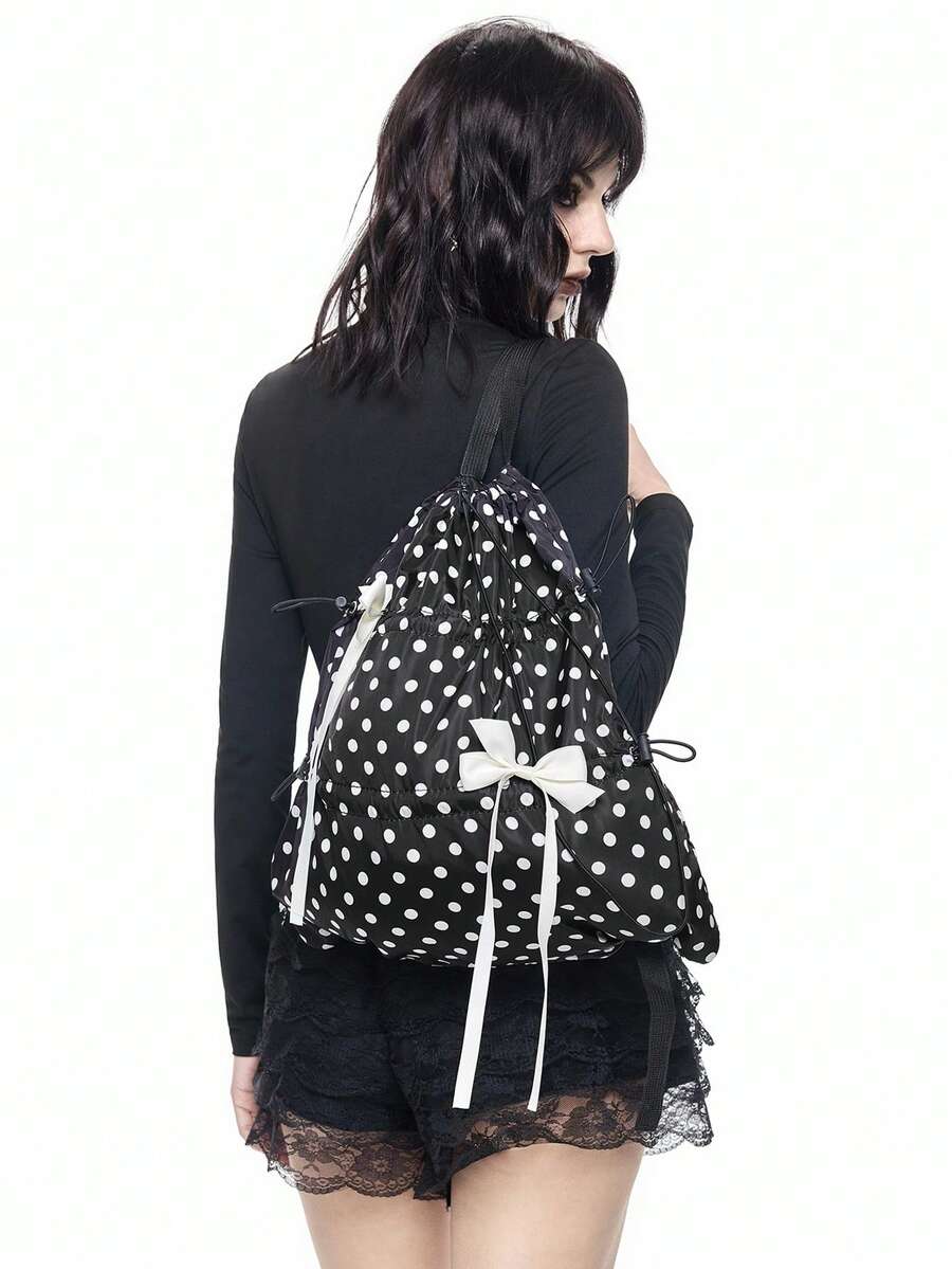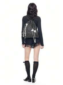 Anime Y2K Cute & Sexy Bow Drawstring Backpack, Minimalist Silver Tech-Inspired Cinch Pouch, Waterproof Lightweight Large Capacity Foldable Storage Bag, Gym Bag, Suitable For Casual, Travel, Commute And Daily Use
