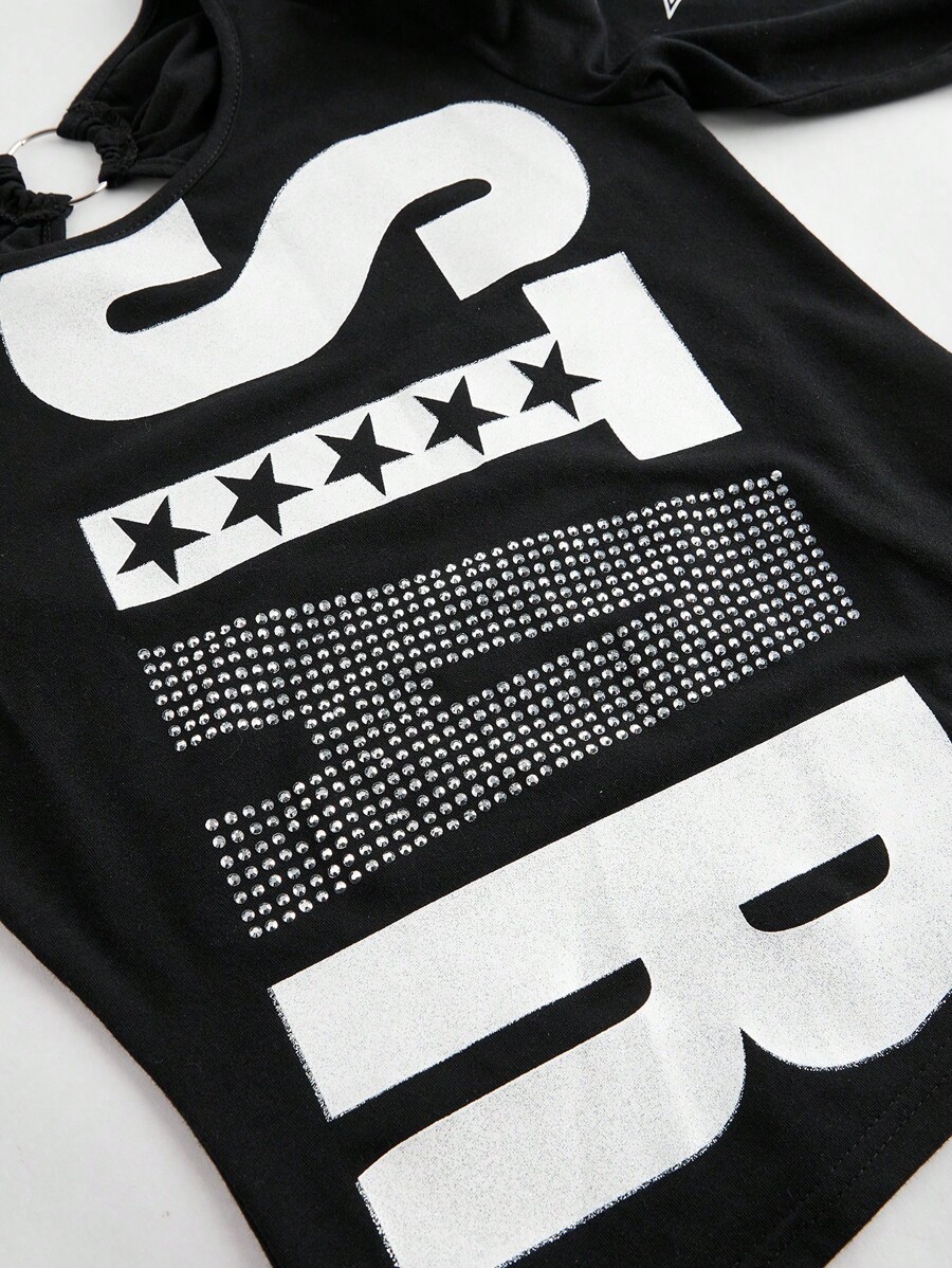 Y2K Millennium Babe Letter & Bling Bling Glitter Print Backless Women T-Shirt