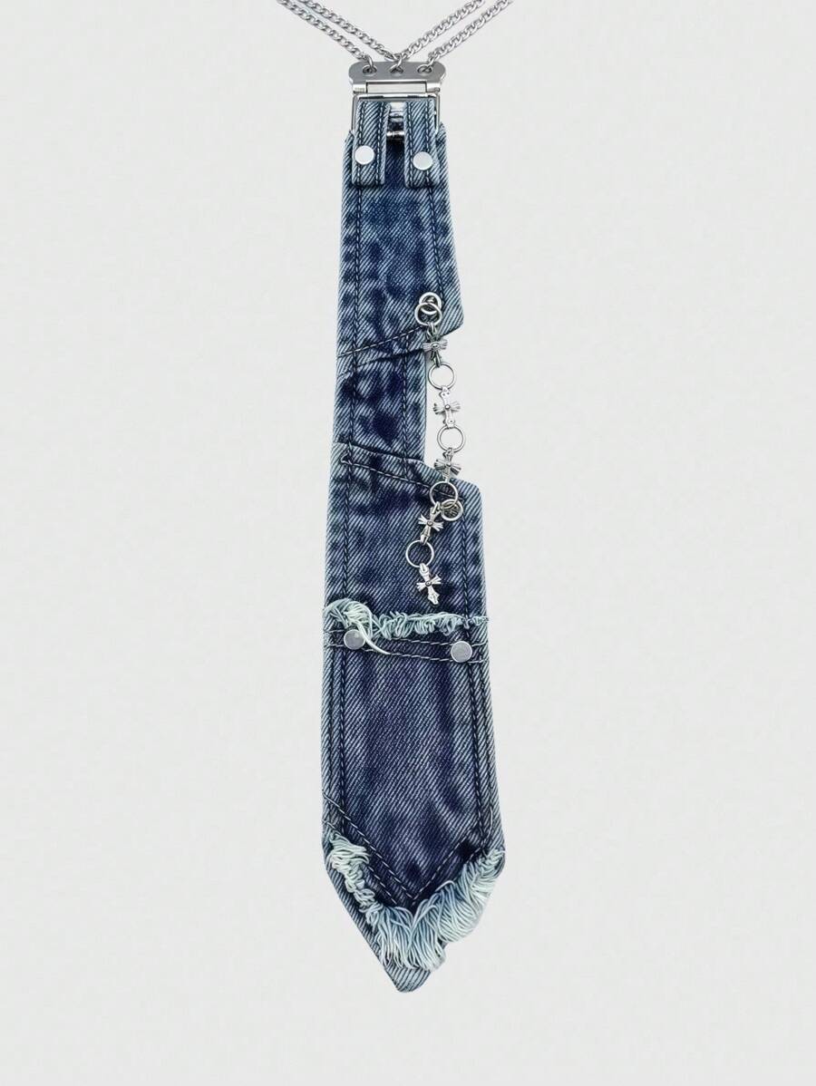 Grunge Punk Y2K Punk Style Metal Ring Decor, Multi-Eyelet Multi-Pocket Distressed Women Tie, Unique Edgy Cool Design Accessory