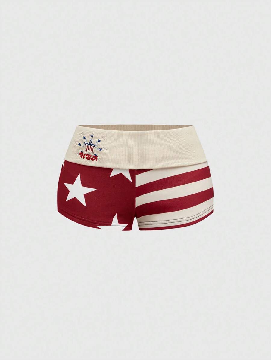 J-Fashion Y2K Retro Midriff-Baring American Flag Print Low-Rise Super Short Shorts For Women
