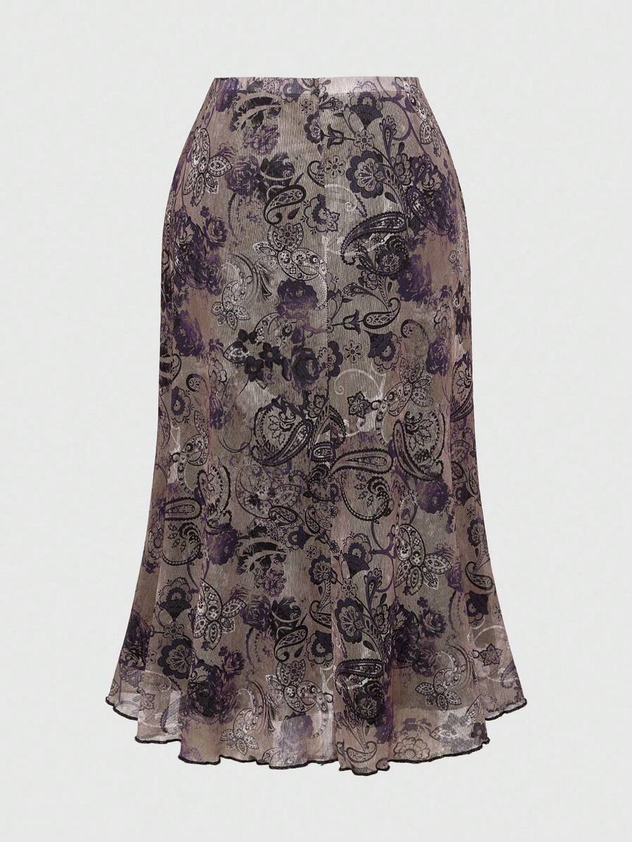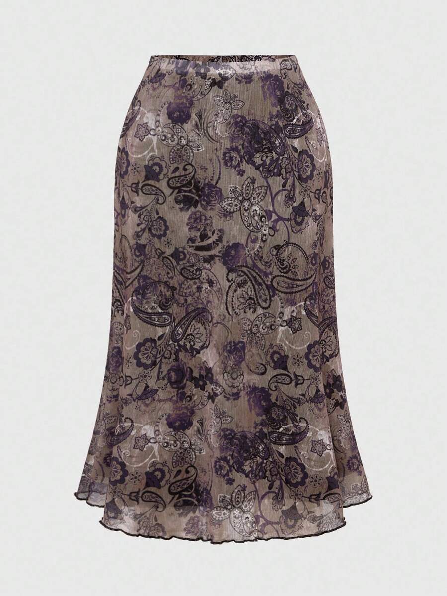 Grunge Punk Y2K Subculture Brown Vintage Floral & Vine Print Women Skirt