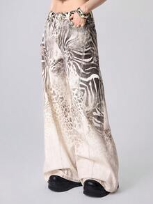 Grunge Punk Y2K Vintage Oversized Straight Leg Low Waist Jeans With Leopard And Zebra Print In Black And White