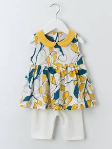 YINGZIFANG Toddler Girls Peter Pan Collar Plants Top And Shorts Set