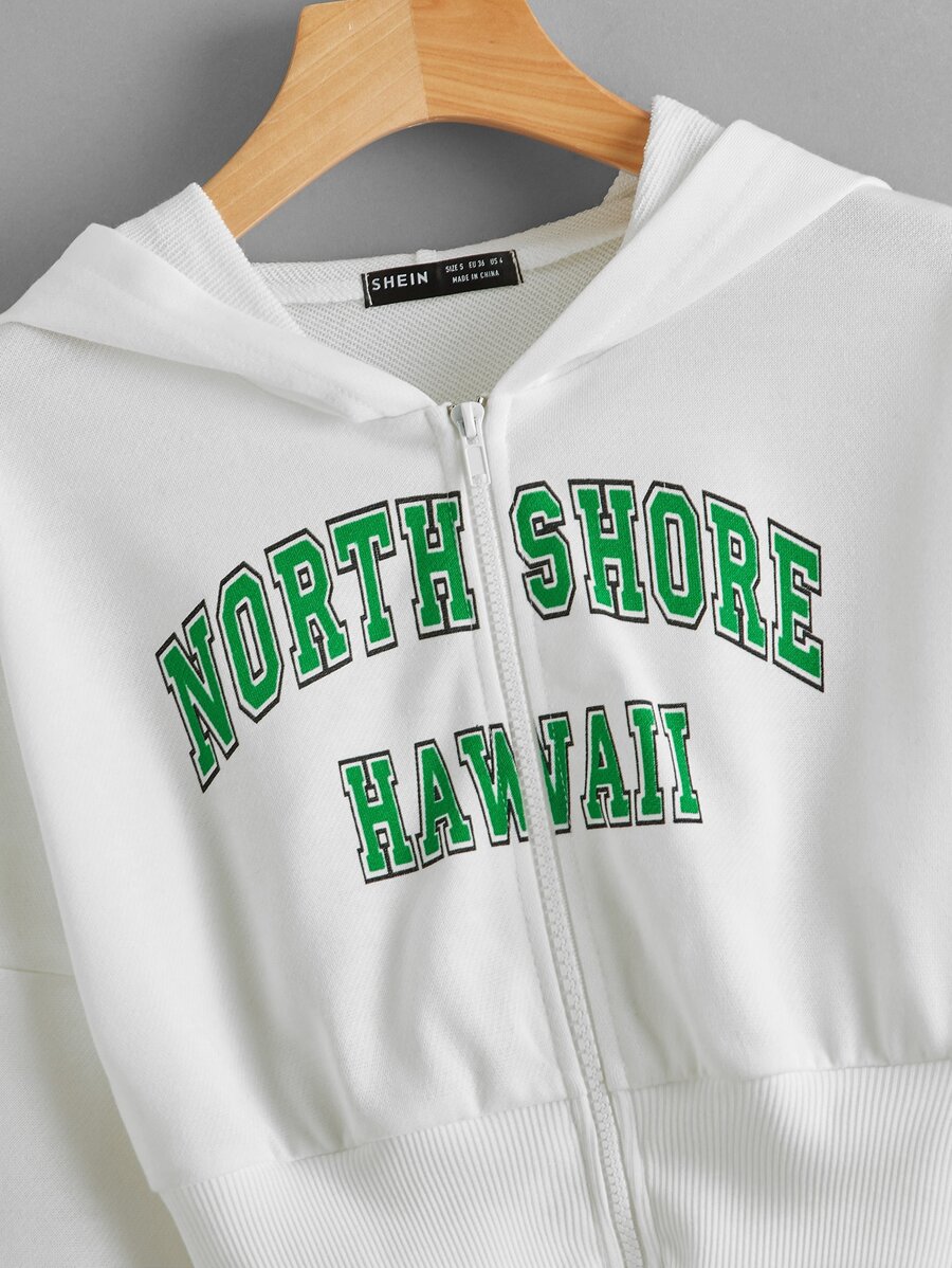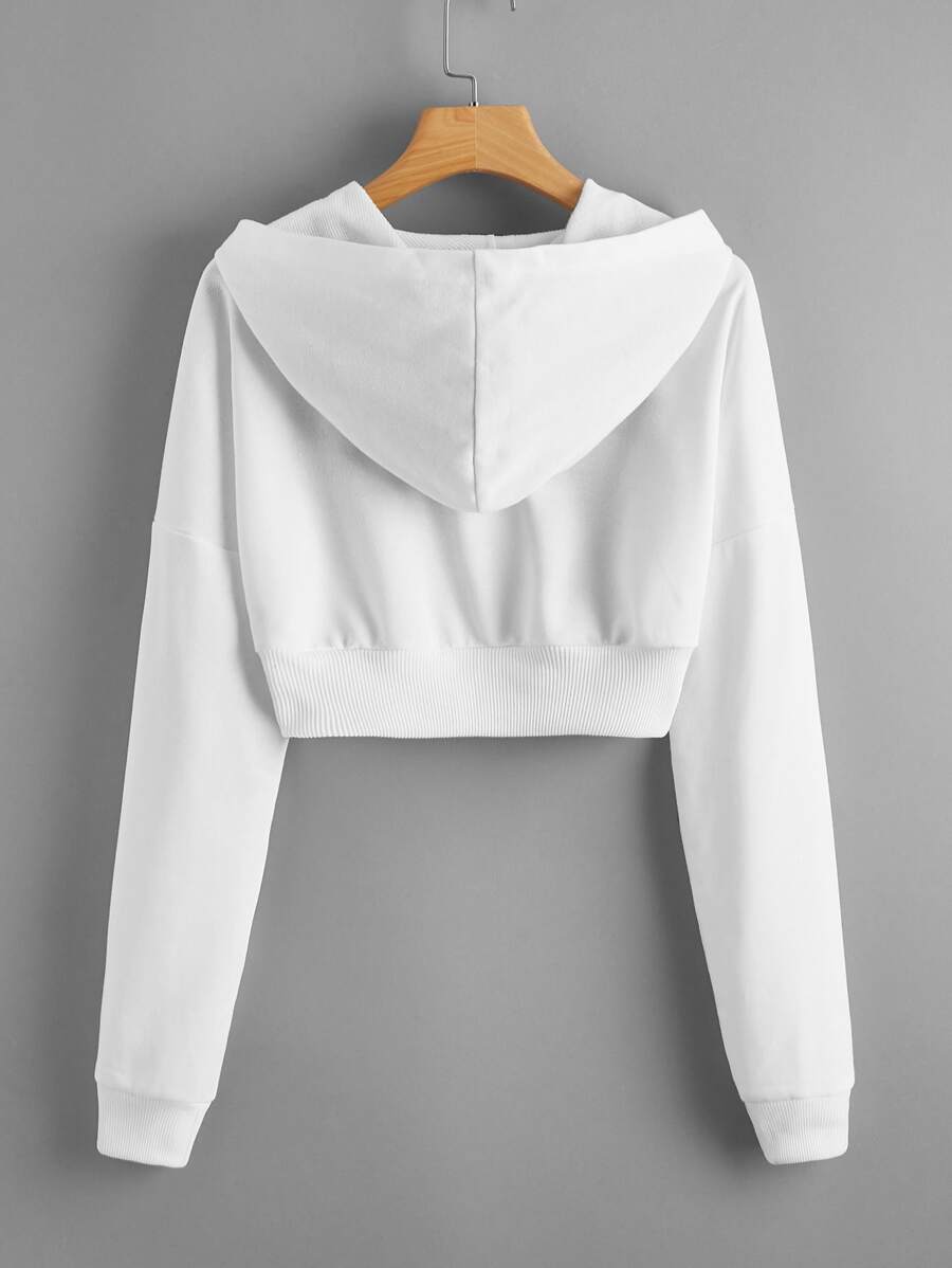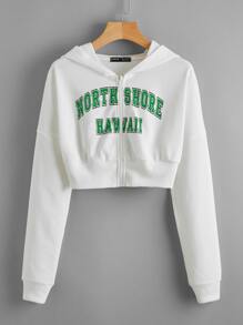 Zip Up Drop Shoulder Letter Graphic Crop Hoodie