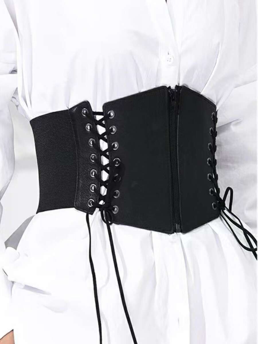 Zipper Front Lace-up Corset Belt