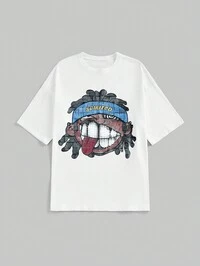 Street Life Women's Loose Graphic Tee 100% Cotton Funny Cartoon Head Print, Streetwear Style
