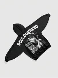 Casual Street Funny Graphic Print Loose Pullover Hooded Sweatshirt