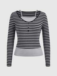 Fairycore Women's Long Sleeve Stripe T-Shirt, School