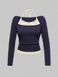 ROMWE Avant Contrast Color Mock Neck Long Sleeve T-Shirt