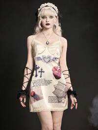 Goth Spring/Summervalentine's DaygraphicWomen's Vintage Cross Heart Antique Book Print Contrast Lace Trim Dress, Spring/Summer, For Party, For Valentine's Day
