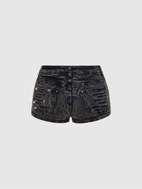 Grunge Punk Y2K Sexy Vintage Beaded Embroidery Super Low Waist Denim Shorts For Women
