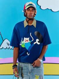Adventure Time X ROMWE Men's Cartoon And Letter Graphic Pointelle Knit Sports Short Sleeve T-Shirt, Athletic Jersey
