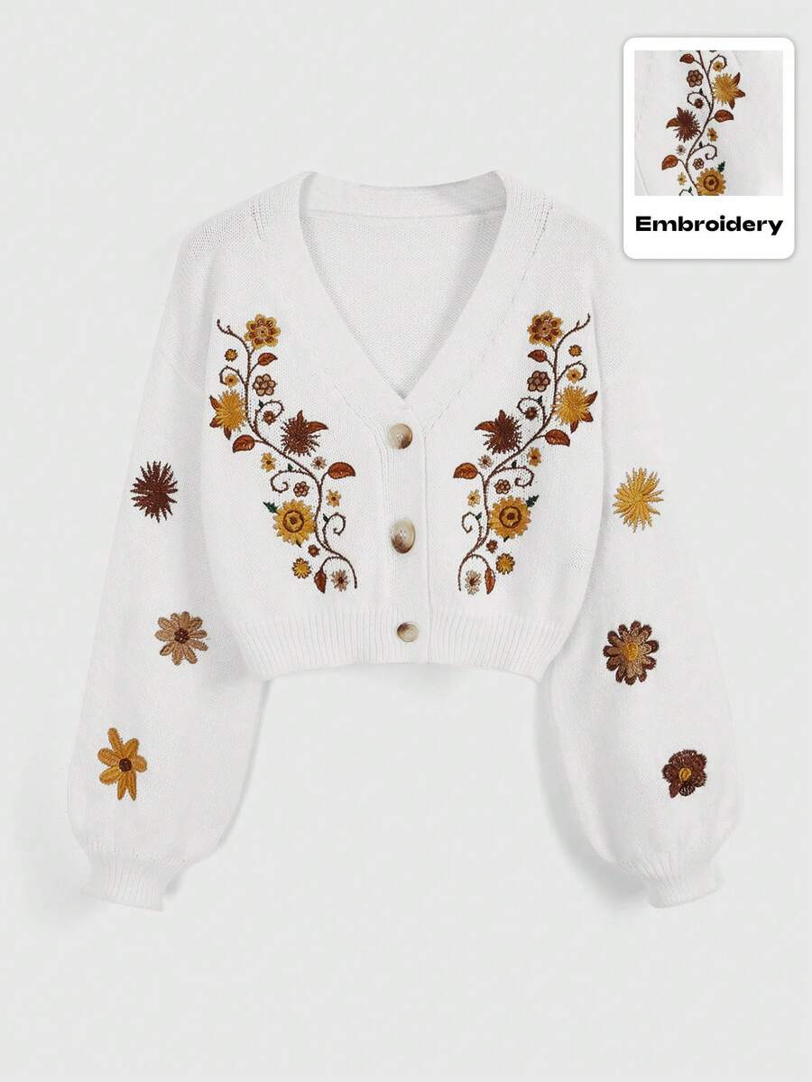 Hippie Women's Cottagecore Bohemian Embroidered Cardigan